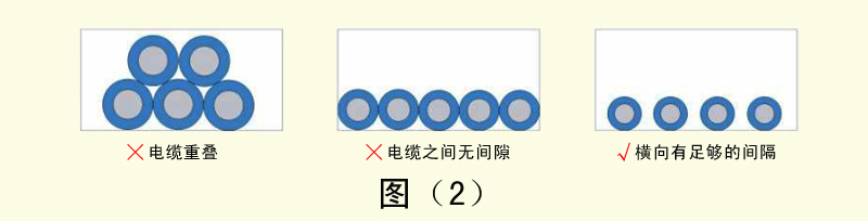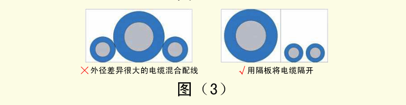 4、外徑差異很大的電纜如果混合配線,容易導(dǎo)致細(xì)線被粗線壓迫,造成細(xì)線容易斷線。這時需要用隔板將電纜隔開。如圖(3)