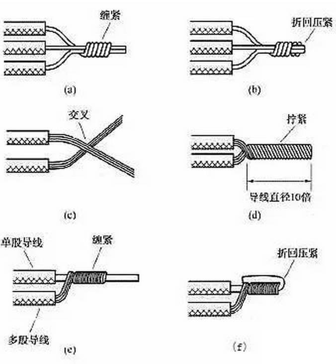 需連接的導(dǎo)線種類和連接形式不同,其連接的方法也不同。常用的連接方法有絞合連接、緊壓連接、焊接等。連接前應(yīng)小心地剝除導(dǎo)線連接部位的絕緣層,注意不可損傷其芯線。