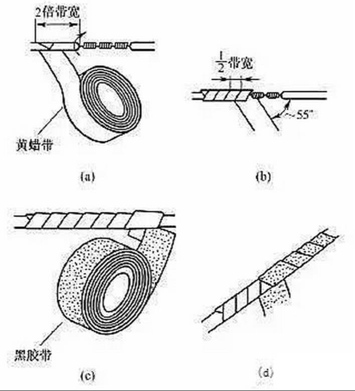 為了進行連接,導(dǎo)線連接處的絕緣層已被去除。導(dǎo)線連接完成后,必須對所有絕緣層已被去除的部位進行絕緣處理,以恢復(fù)導(dǎo)線的絕緣性能,恢復(fù)后的絕緣強度應(yīng)不低于導(dǎo)線原有的絕緣強度。